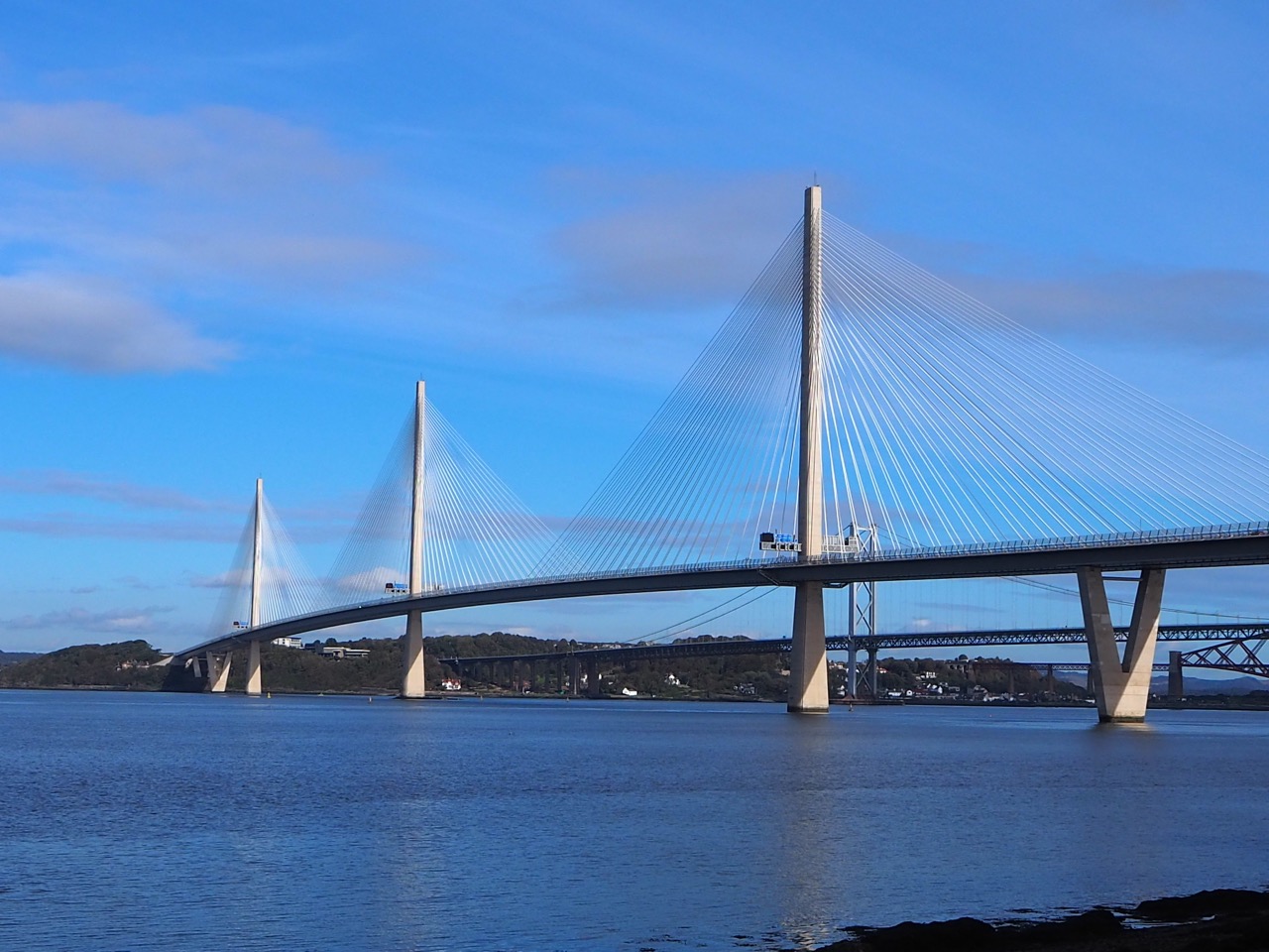 Perhaps the most famous of the bridges is the first, The Forth Bridge (A UNESCO World Heritage Site), a railway bridge built of steel in three diamond-shaped sections and painted an iconic red. Next along, is the Forth Road Bridge, and then the very modern 'suspension' bridge, known as the Queensferry Crossing which carries road traffic.