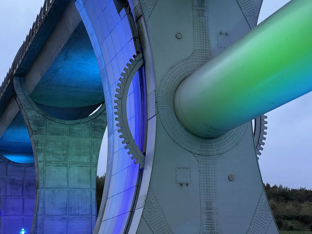 The Falkirk Wheel in action - 'sound' on for the wonderful noise made by this giant piece of engineering