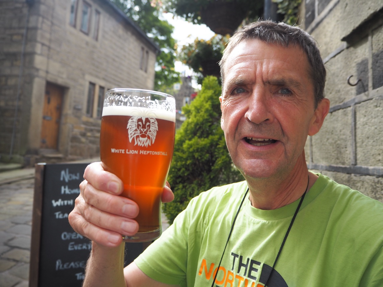 The hills are now green and rolling from valley to valley. Then it’s down and up to the Yorkshire village which shares my name - Heptonstall. It's a short distance off the Pennine Way, but it's well worth the small detour. Of course, I definitely feel at home here. Even my pint glass had my name written on it - Heptonstall! It tasted even better for that.