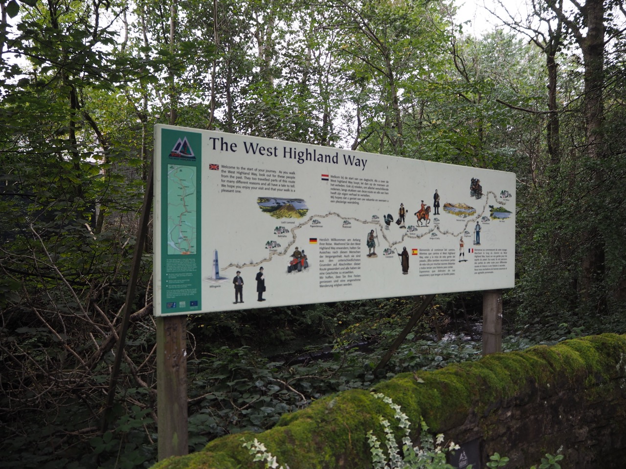 The start of The West Highland Way is just off the high street in Milngavie (pronounced Mulguy). Excitement is in the air as you walk past the steel posters with images of what lies ahead - posters of Ben Lomond, Rob Roy's Cave, nesting Osprey, Etive Moor, Kingshouse and the wilderness of Rannoch Moor.