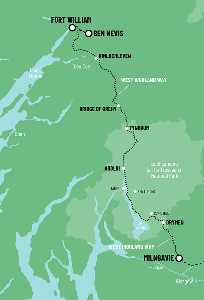 95 mile 'fly through' the stunning West Highland Way. From Milngavie to Fort William
