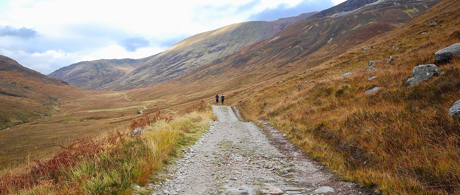 But do not worry by the size of these mountains rising above you, The Northern Trek follows the valley through this range and the path ahead is well walked and easy to follow. From Kingshouse, the footpath climbs the Devil’s Staircase, which in truth is a relatively easy climb, with views back over the tops and down to Kinlochleven. We stayed at the side of the loch for the night, at the MacDonald Hotel.